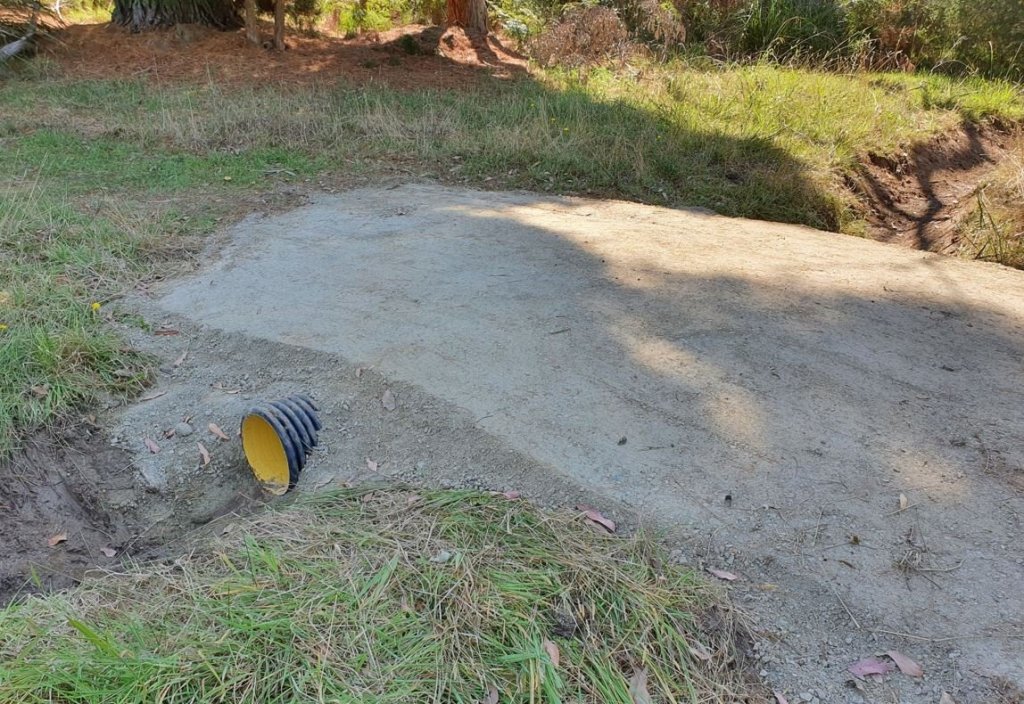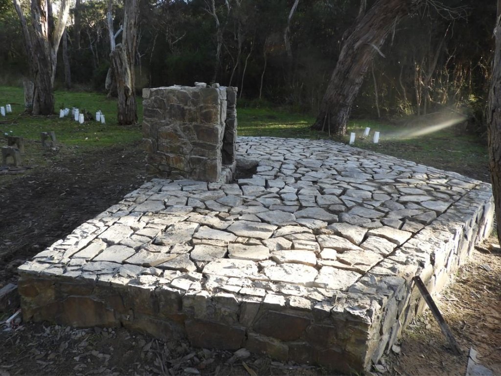 Pathway improvements: Culvert over existing drain Drainage works have been undertaken to improve site accessibility on a philanthropic basis by DM Roads. At this meeting, Ash from DM Roads had completed a review of work conducted to date – placing a drain underground at a choke point on the pathway into the Chapel precinct and construction of a culvert over another drain further back towards Marine Parade (shown above). Also present were the stonemason, Mornington Peninsula Shire and CYMCA representatives. The drainage works are designed to vastly improve accessibility to the Bush Chapel.
