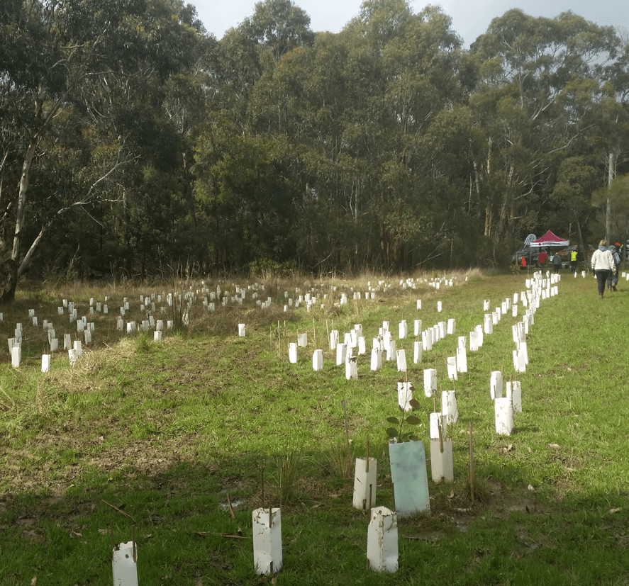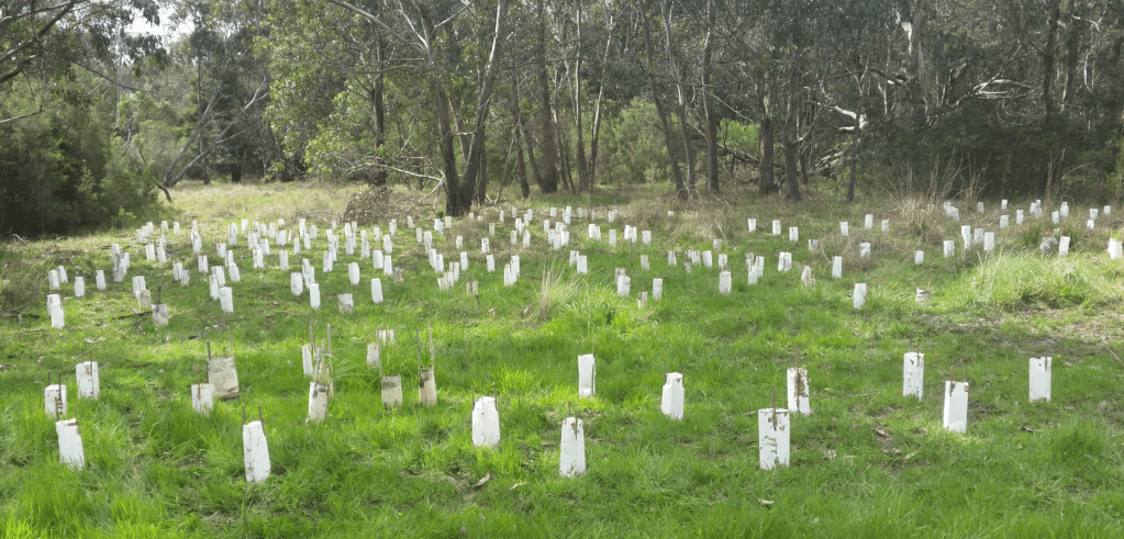 Part of the pathway plantings – Marine Parade end A mass planting event along the pathway to the Chapel from Marine Parade was conducted in conjunction with the Shire and the Mornington Peninsula Koala Conservation Group (MPKCG). It is fantastic that these groups can collaborate for mutual benefit.